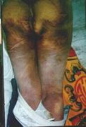 29.1999年12月22日,江西省法輪功修煉者劉姐在北京天安門廣場煉法輪功時被抓捕。她被關押在天安門派出所直到12月24日。在關押期間,她被警察搜身,審訊和酷刑折磨。她的腿部後側嚴重黑紫。
